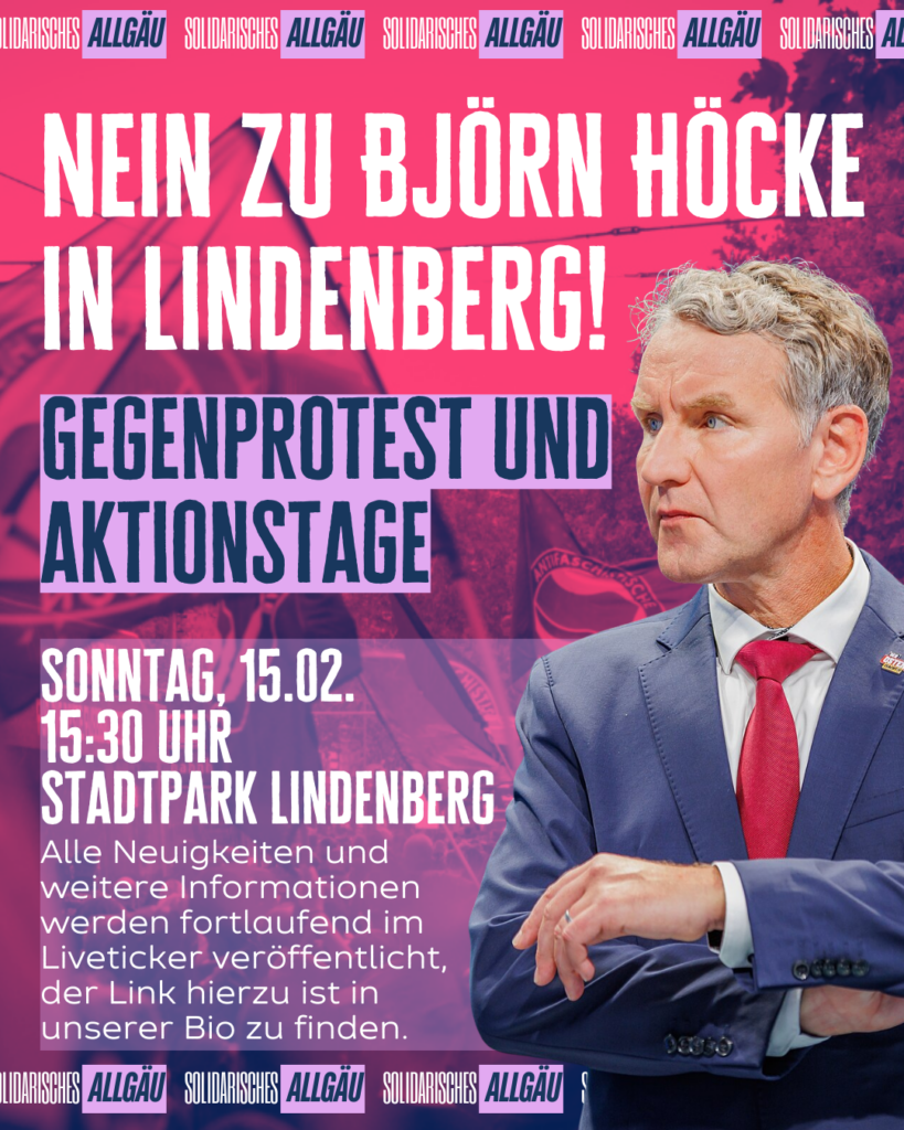 Am 17. Januar unterstützten wir den Gegenprotest zu einer AfD-Wahlkampfveranstaltung im Gasthof Rössle in Altusried. Auf dem Podium erwartet, wurde unter anderem Beatrix von Storch. Gemeinsam mit den Organisator*innen der Aktionsgruppe Kempten stellten wir uns dem Aufmarsch der AfD-Prominenz klar entgegen. Unterstützt wurden wir von den Genoss*innen des OAT Ravensburg sowie von der Solid Biberach – mit klarer Haltung, solidarisch, laut und entschlossen.