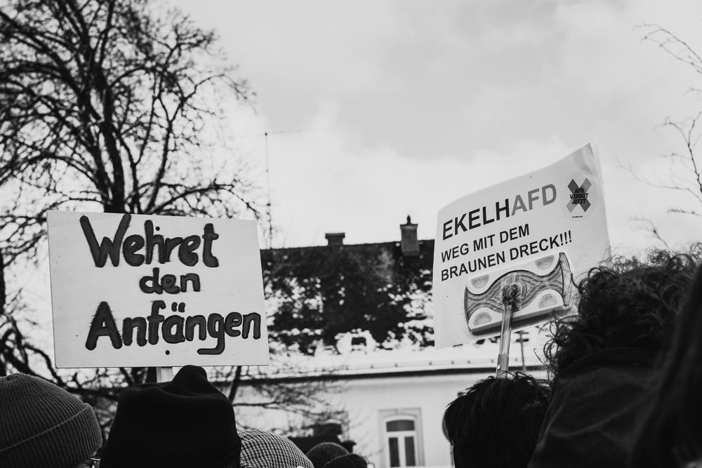 Unser Protest richtete sich deshalb nicht nur gegen die Person Höcke, sondern gegen Geschichtsrevisionismus, gegen die Relativierung des Nationalsozialismus, gegen die beschworene „Volksgemeinschaft“, die immer auf Ausschluss, Gewalt und Unterdrückung basiert. Wer von „Remigration“ spricht, meint Deportation. Wer von „Identität“ redet, meint Blut und Boden.
